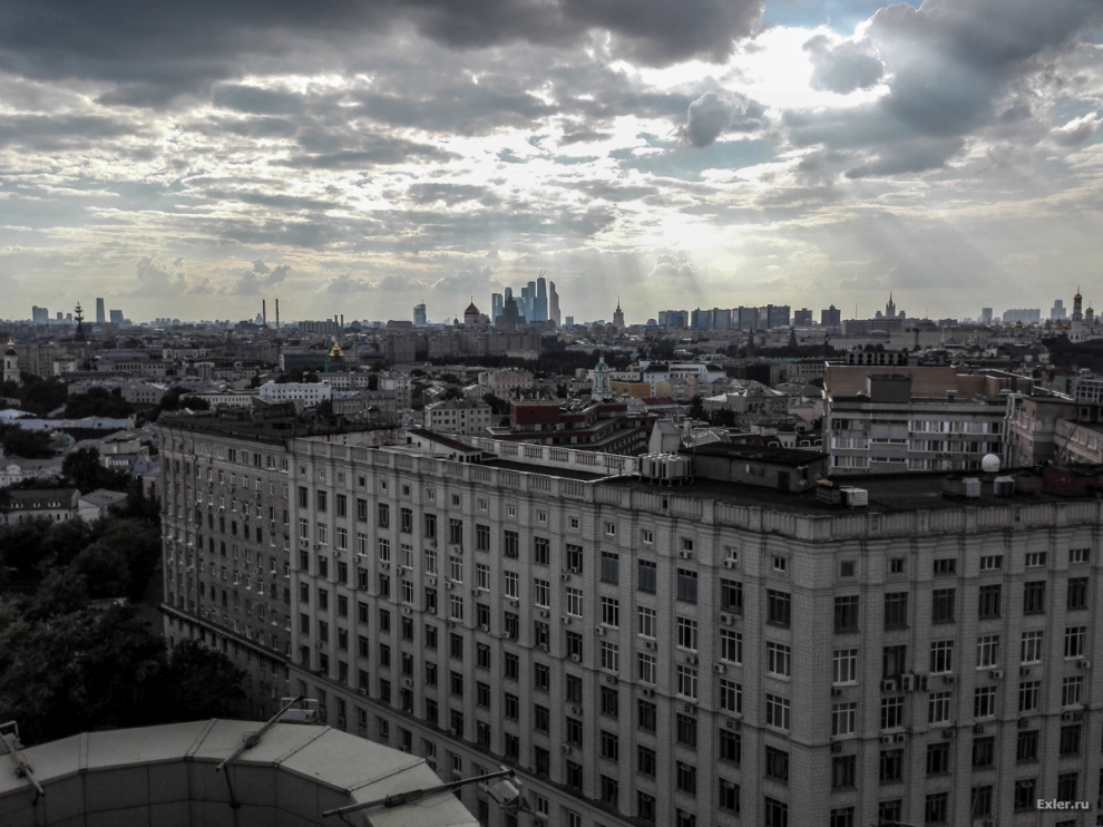 Гарик сказал, что там можно и на крыше посидеть, и что-нибудь вкусное съесть, а он в таких делах знает толк. Хотя на лошадке покататься нам уже не обещали, но виды искупали все - там почти на 360 градусов открывается центр Москвы. (Фото кликабельны.)