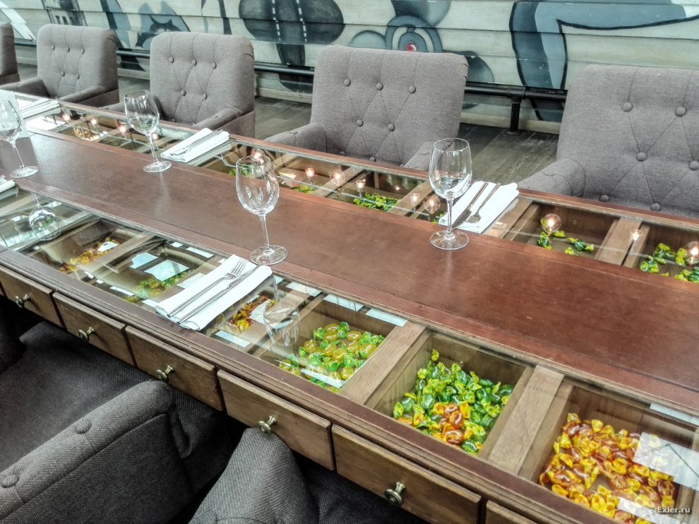 В ресторане в определенное время работают аниматоры для детей, ну и во многих столах есть ящички с конфетками - детям очень нравится. А уж как это понравилось нам с Черским...