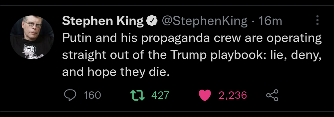 Кстати, есть такой юморист, на которого дрочат ватники. Бывший эксперт ООН Скотт Риттер, неоднократно осужденный за сексуальные домогательства к несовершеннолетним. По его мнению, Россия громит Украину, одерживает блистательную победу, которой нет аналогов за последние полвека. Мариуполь был захвачен менее чем за час. Украинская армия недееспособна. Мирное население не убивают. Русские помогали жителям Бучи, а убивали их украинские полицейские.