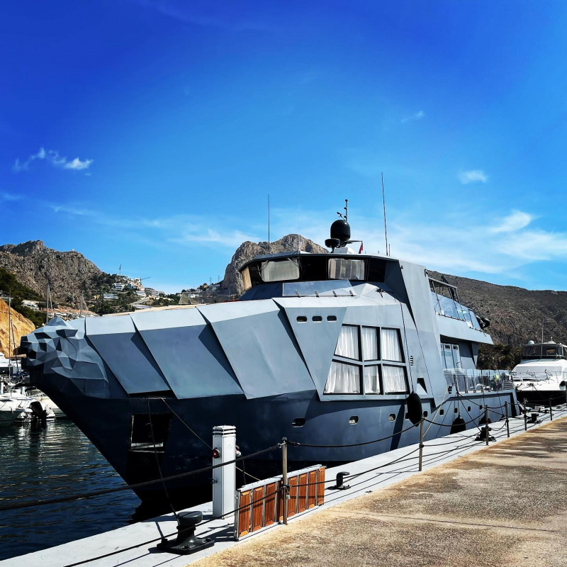 Петр Андрушевич сфотографировал это чудо в яхт-клубе испанского города Altea (это недалеко от Бенидорма) и выложил у себя в Фейсбуке. Пишет, что с борта катера "Грозный" доносилась русская речь. Ну, это как раз вполне ожидаемо: дизайн в стиле "Помесь бэтмобиля с автоматом Калашникова" характерен для некоторых наших соотечественников.