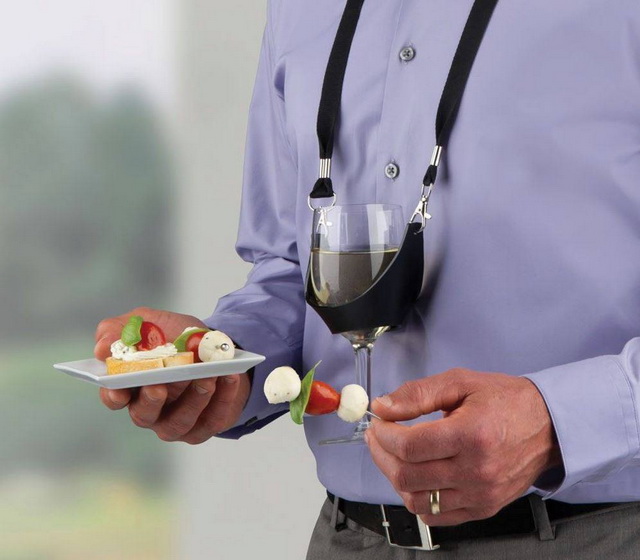 Ну и еще одна совершенно необходимая штука, которую я сразу заказал, как увидел - держатель для бокала на шею. Кто хоть раз был на каком-нибудь фуршете - тот знает, какая это лажа: таскать в одной руке тарелку с закусками, а в другой - бокал. А тут - все проблемы решены!