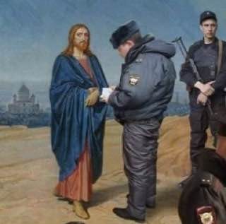 А и действительно: стоять во время праздника Пасхи с плакатом "Христос за мир" - это же надо было так мерзко провоцировать полицейских.