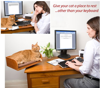 Отличная идея - Kit-In Box. Это специальная лежанка для кошаков, которая монтируется непосредственно на рабочем столе. Предполагается, что теперь кошаки не будут ложиться на клавиатуру, как они это любят делать.