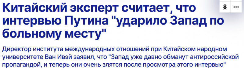 Конечно же, после интервью Путина Карлсону китайские читатели портала "Гуанча" страшно восхитились и выражали бешеные слова восторга по поводу заявлений российского президента. Особенно неистовствали в похвалах пользователи 这他妈的有什么意义 и 你他妈的在搞什么.