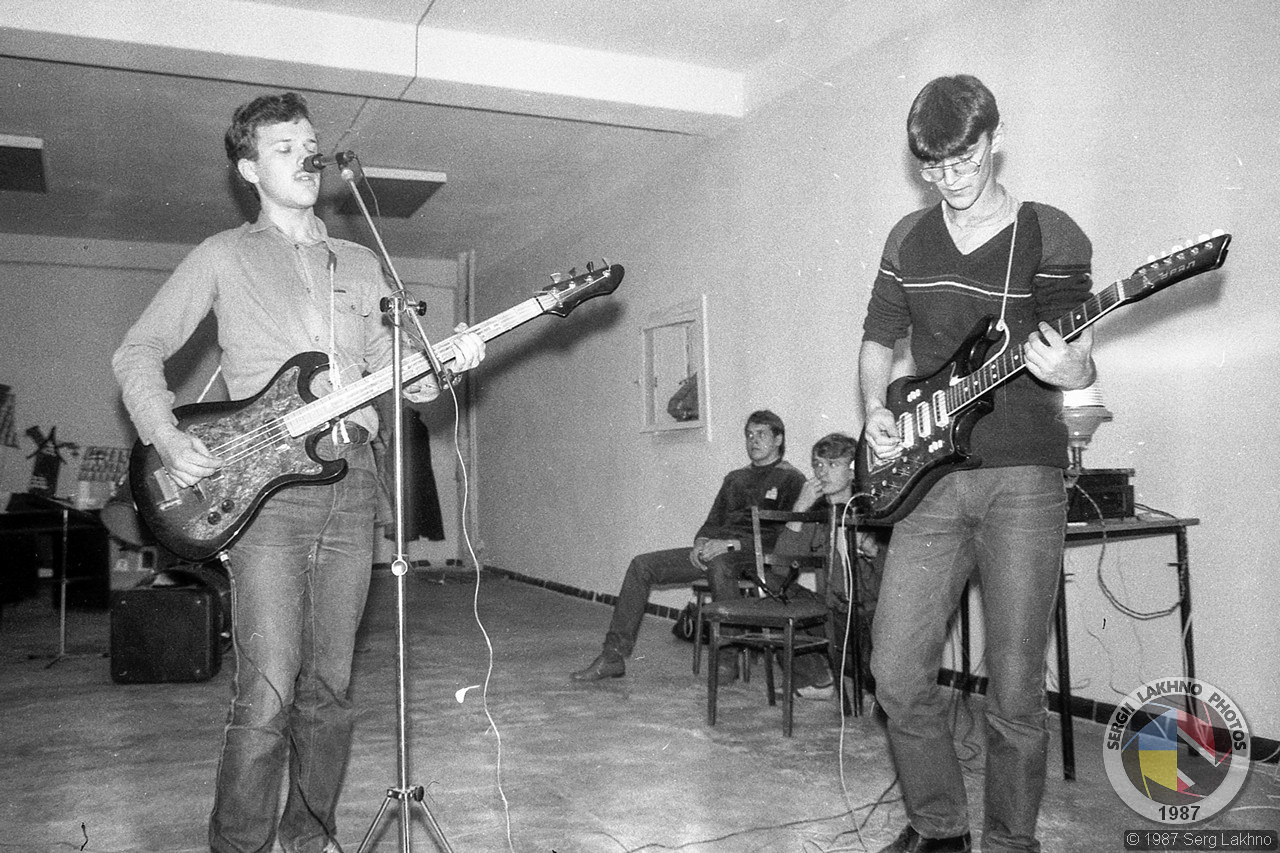 У меня сохранилась единственная наша запись - "Концерт в аудитории 204", конец ноября 1987г. Сам удивляюсь, что звучит еще и неплохо, там аудитория - голые стены, даже штор на окнах не было, акустики - никакой. Все песни сугубо авторские, и слова, и музыка.