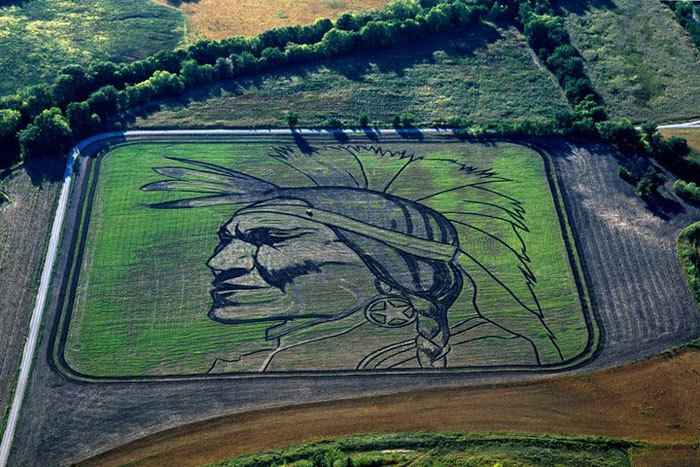 Тогда можно создавать картины с помощью трактора. Именно это делает художник Стен Херд, большой любимец пилотов самолетов/вертолетов и пассажиров этих летающих средств передвижения. Ведь его творчеством можно любоваться только с высоты.