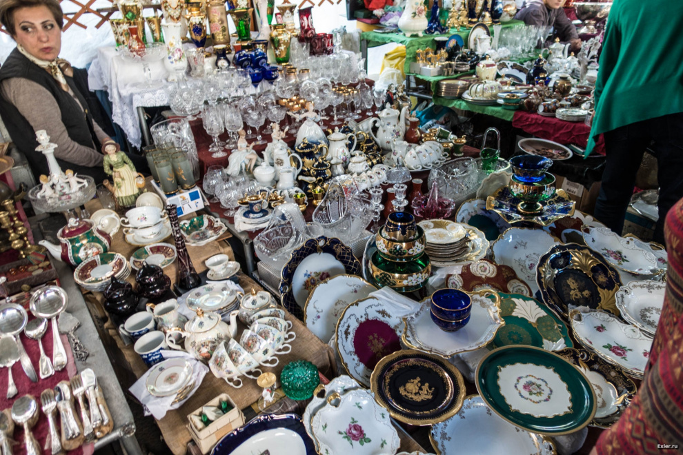 На ярмарке был целый здоровенный ангар со всякой колоритной посудой в стиле наших бабушек-дедушек. Некоторые сервизы были очень красивы, хотя я бы себе такой не взял: я люблю модерновый стиль во всем, а не ретро.