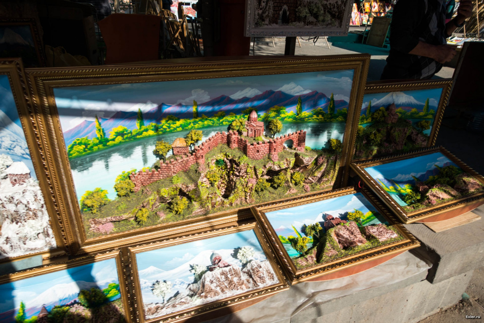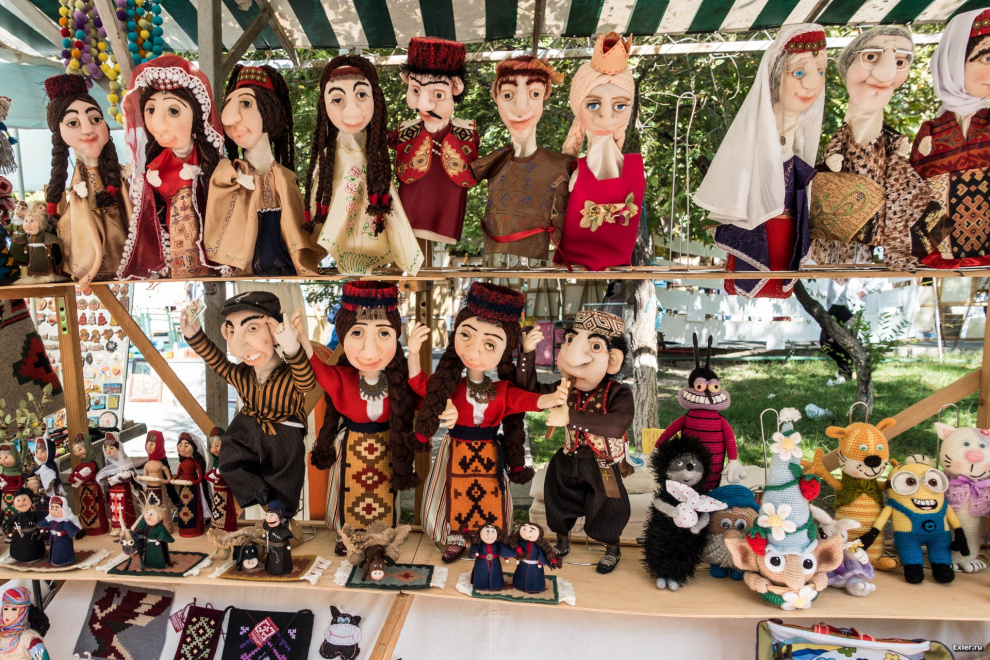 Правда, в Испании-Каталонии ярмарки тоже интересные, но там все больше по еде и сувенирам. А в Ереване - прям выставка народного творчества, причем творчество - ого-го какое. Впрочем, лучше сто раз увидеть, чем один раз кто-то наболтает. Смотрим.