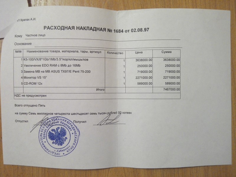 В 97-ом у меня появился первый комп, до сих пор чеки храню.
