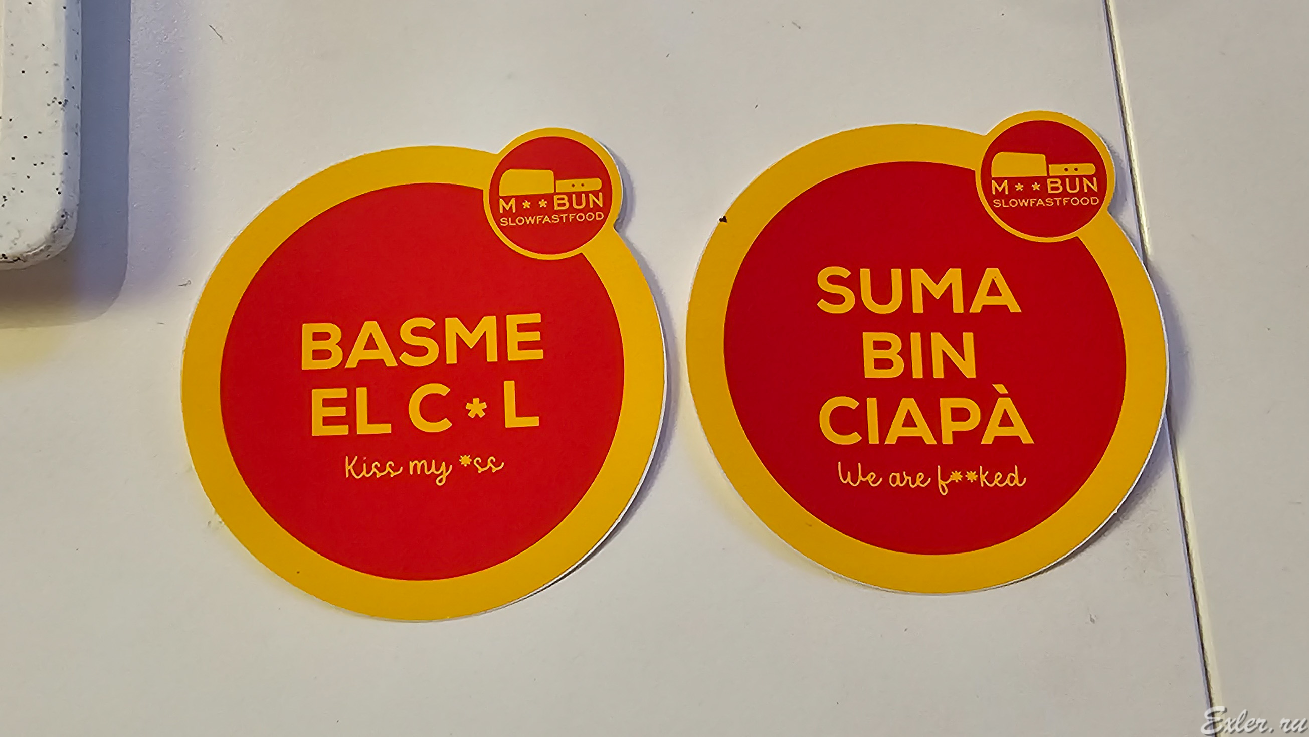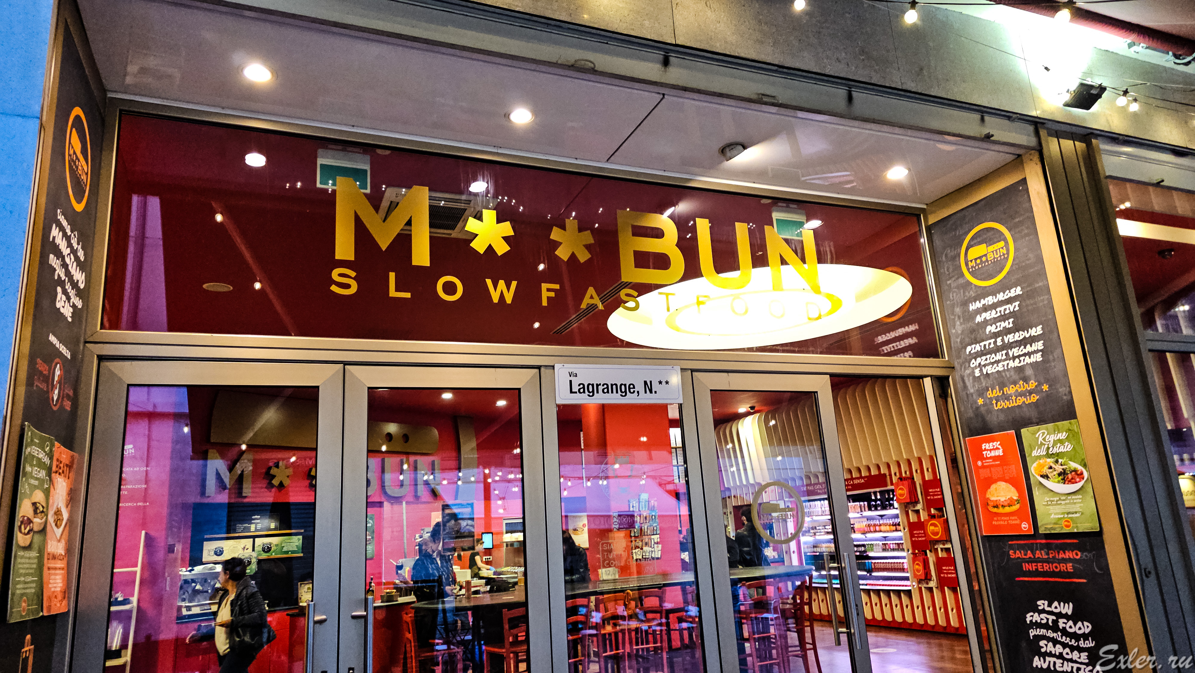 И они сделали ресторан, которому дали название Mac Bun, что на пьемонтском диалекте означает "очень вкусно". Но тут начал выступать Макдональдс, и тогда Даниэле и Андреа, не долго думая, сократили название до M**BUN, и в результате получилось что-то вроде "вкусно и две точки",