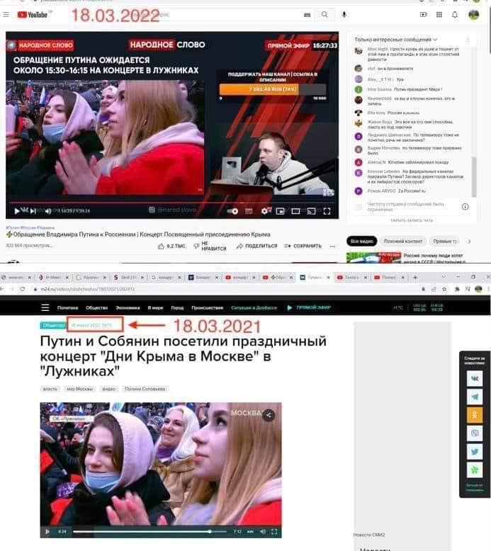 Вчера в России проходили праздничные концерты, посвященные захвату Россией Крыма и в поддержку войны с Украиной. В Москве в "Лужниках" прошел большой концерт, на который сгоняли бюджетников, также билеты на этот концерт раздавали в различных учебных заведениях.
