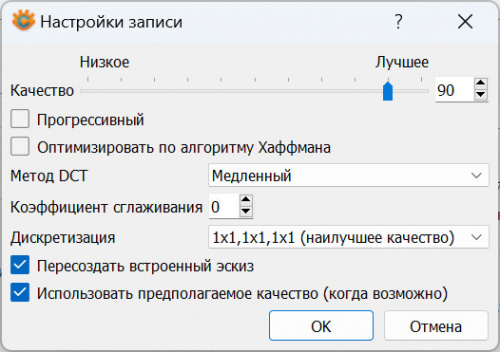 Но там сделано совсем странно (хорошо что я такие вещи проверяю): выходной JPG имеет максимальный размер по горизонтали - 1616 пикселов. И это никак нельзя поменять! Вот настройки JPG: как я с ними не извращался, больше 1616 по горизонтали она не выдавала. А это сразу в топку!