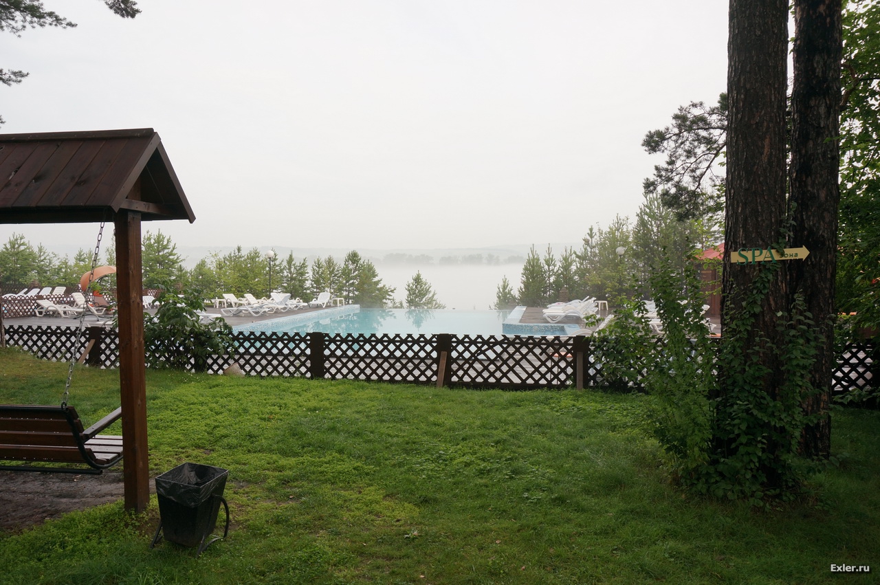 Буквально в двух шагах - бассейн с роскошным видом на Енисей.