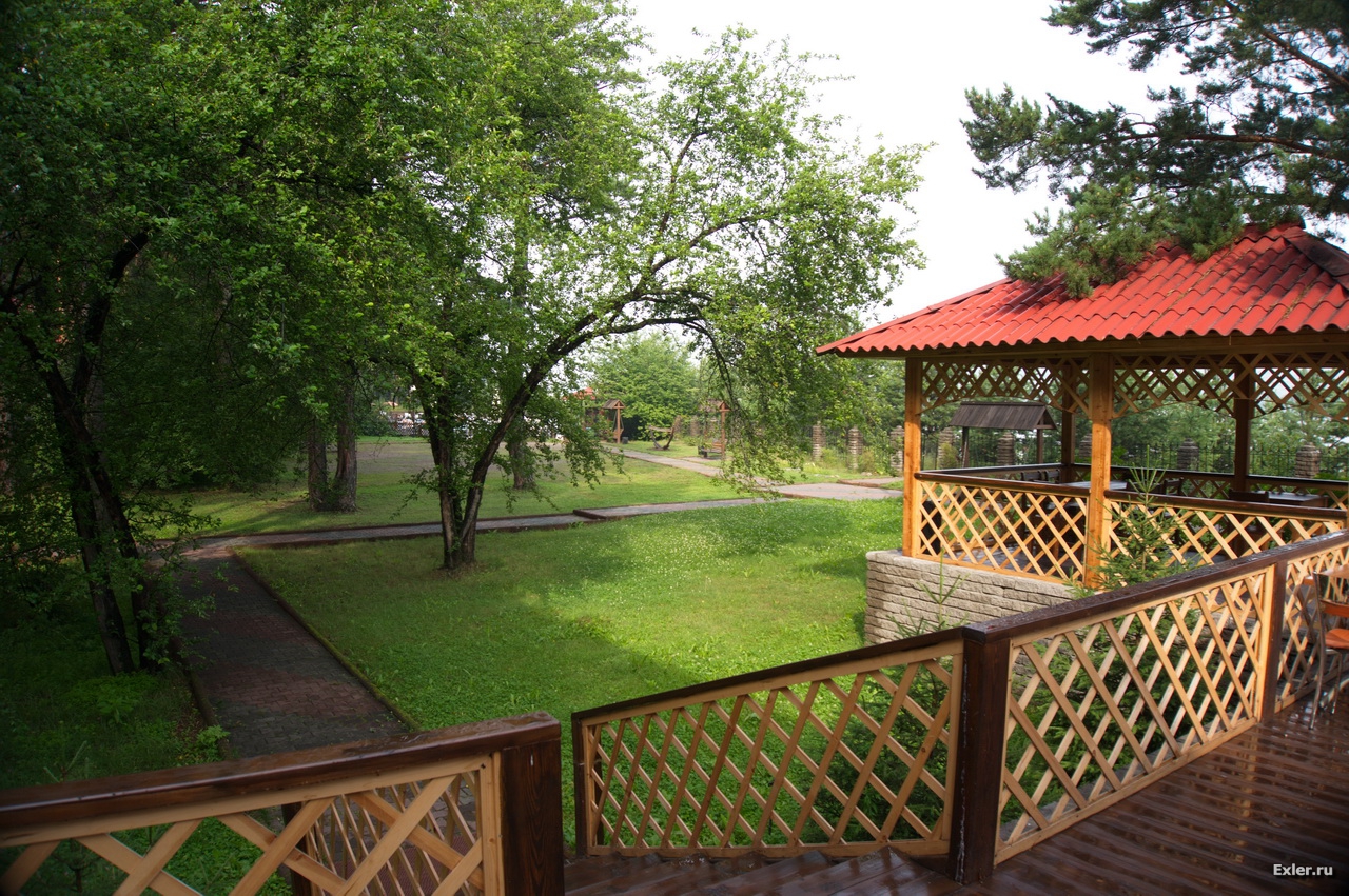 Территория дома отдыха: всякие веранды, домики, газончики и все такое.