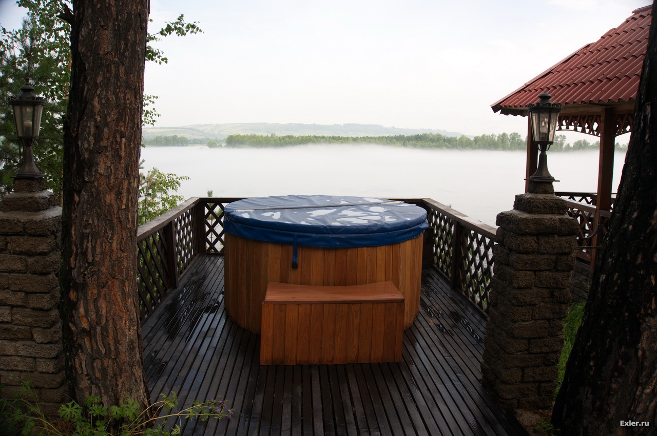 Из ванной открывается чудесный вид на Енисей, где периодически проплывают баржи, везущие закрома Родины для продажи капиталистам. Меня спрашивали, насколько серьезно я рисковал жизнью, делая первый кадр для вот этой записи. Отвечаю. Сильно рисковал. Я в этот момент сидел в джакузи и мог перегреться.