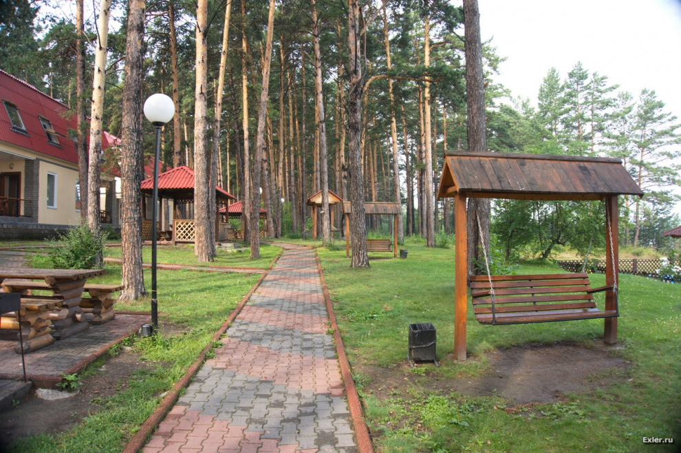 Коттеджи стоят в шикарном сосновом лесу и тут все сделано очень удобно - полно всяких качалок (не для мышц, а чтобы раскачиваться), гамаков и так далее.