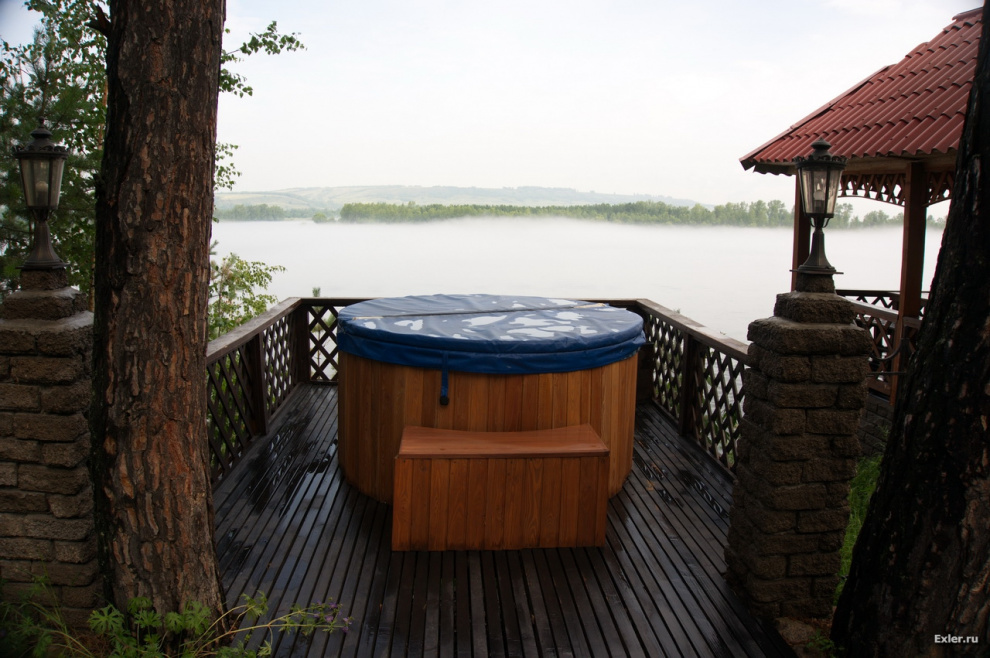 Купальня от сауны с видом на реку.