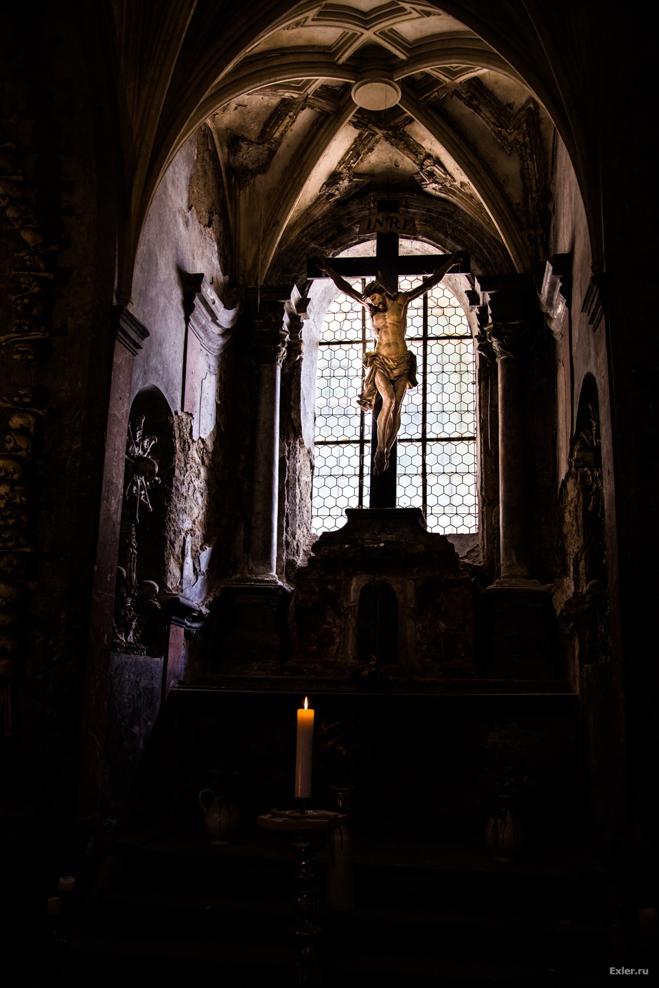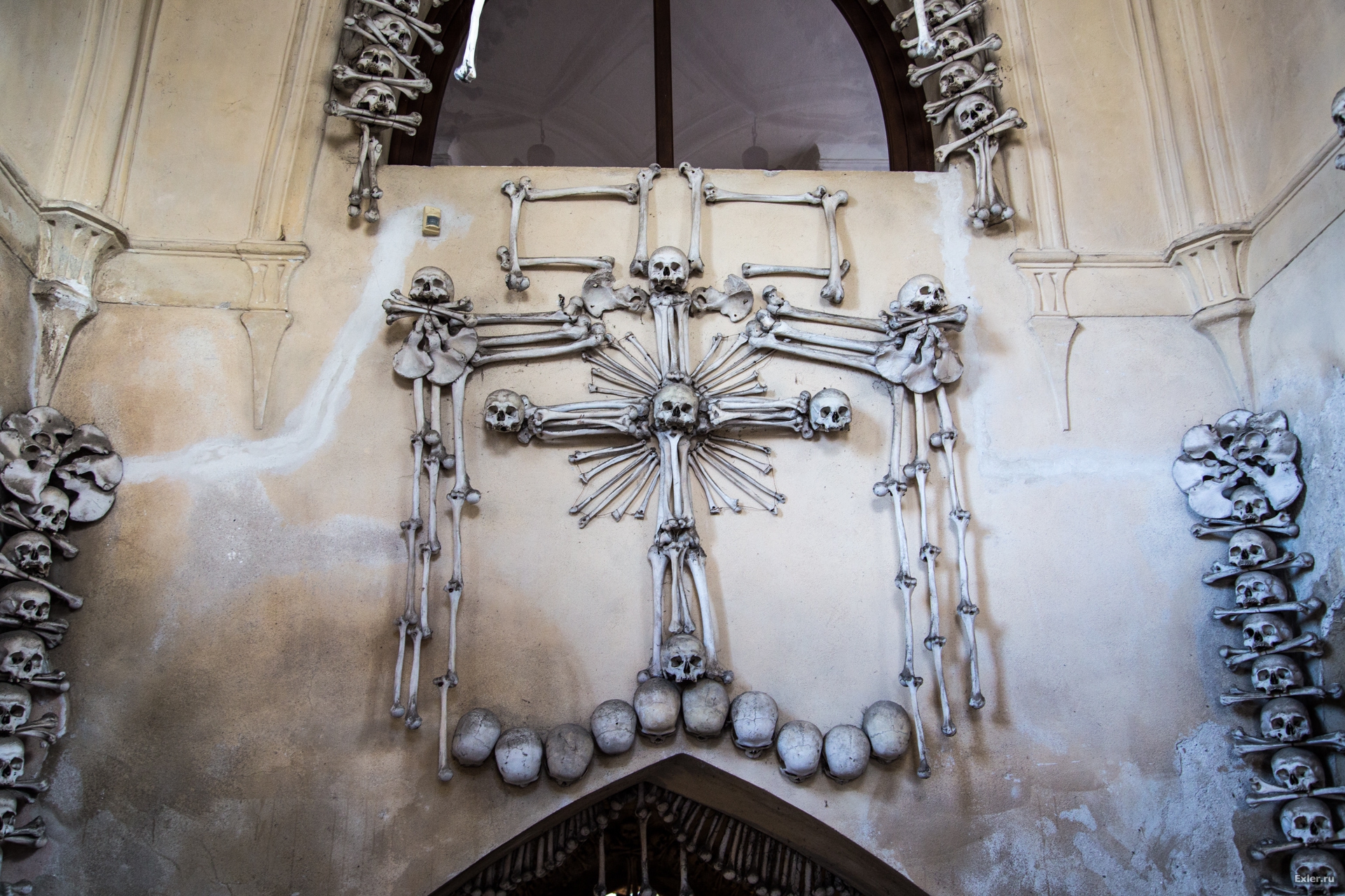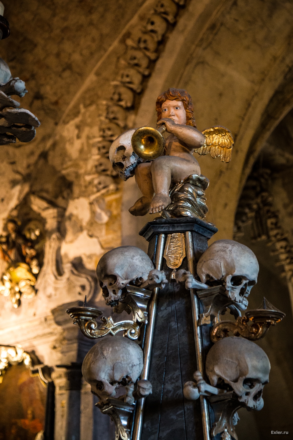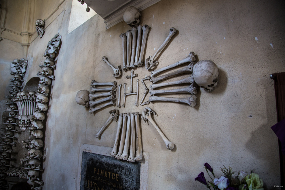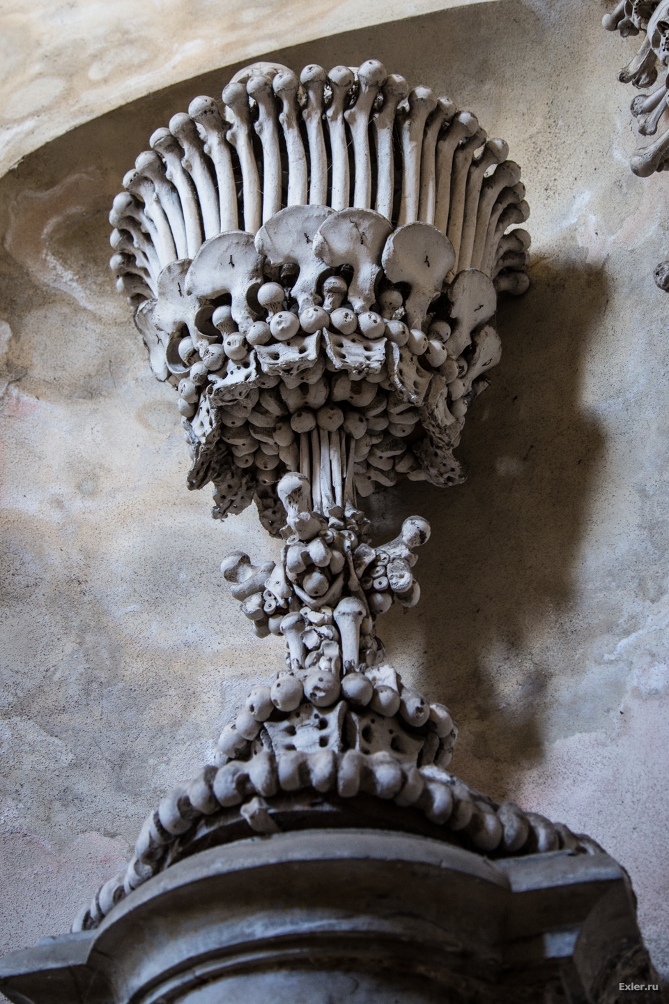 Мастер отбелил кости и начал украшать ими выстроенную большую часовню. В результате - получился памятник культуры, созданный из останков нескольких десятков тысяч человек. И этот памятник привлекает толпы туристов, которые приходят сюда или подумать о бренности всего сущего, или насладиться красивыми видами огромной люстры, дарохранительницы или герба Шварценбергов - все это сделано из костей.