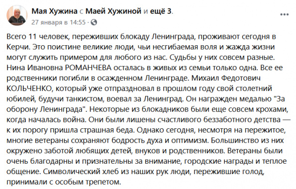 Из фейсбука главы горсовета Керчи Маи Хужиной.