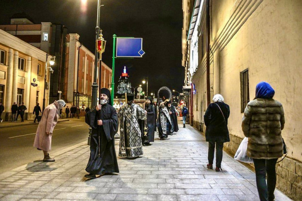 Слушайте, все знают, как я не люблю попов (вообще говоря, любых), но в данном случае это конкретный передерг. Они никаких толп не собирают, участвует в этом 6-8 человек, идут друг за другом на безопасном расстоянии и просто обходят стены своей обители.
