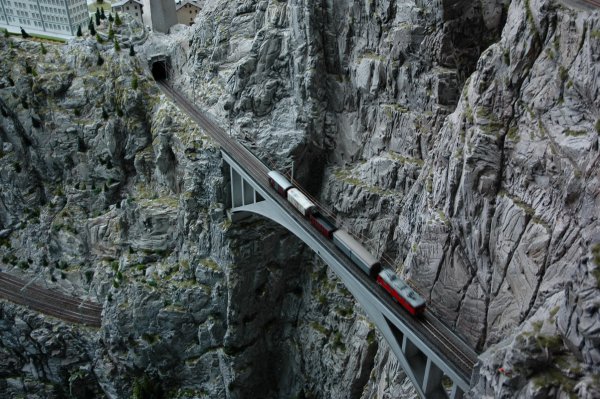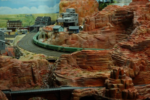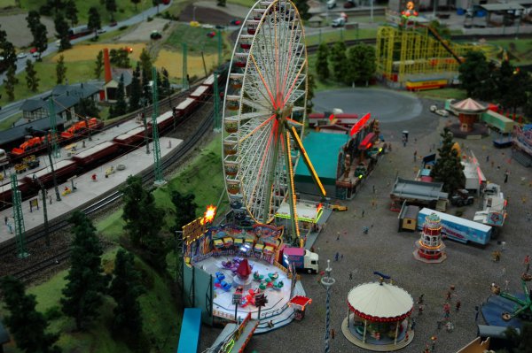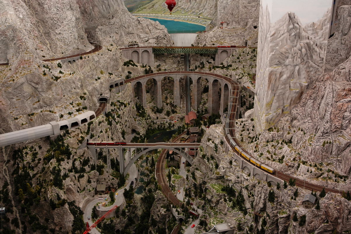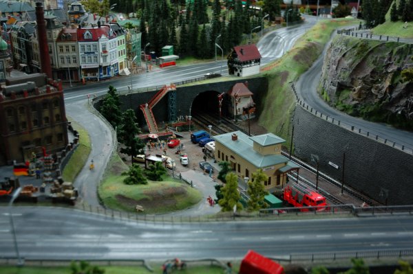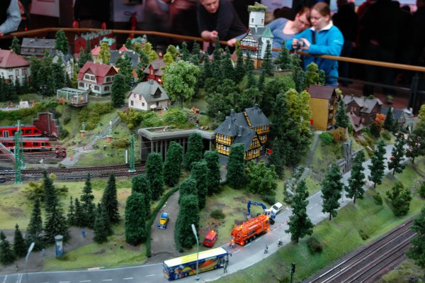 А авто тоже двигаются? Ведь в отличие от игрушечной ж/д, сделать их движущимися (со всеми необходимыми ограничениями) много труднее. Поезд по рельсам получает электропитание и они же задают направление (чтобы с рельсов поезда не сходили, достаточно, чтобы игрушечная АСУ на виражах сбавляла скорость; впрочем, есть и другие методы). С авто так просто не выходит. Да и с водяным транспортом тоже. Неужто радиоуправление + автошофёр? Не верится как-то - дороговато это...