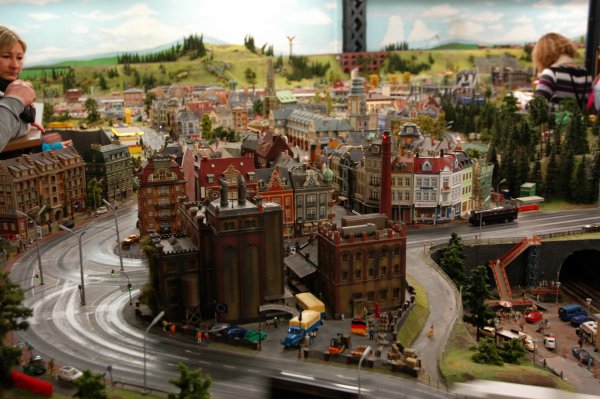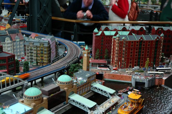 На макете также представлен довольно большой кусок Гамбурга. Очень забавно наблюдать склады , которые проезжал десять минут назад.