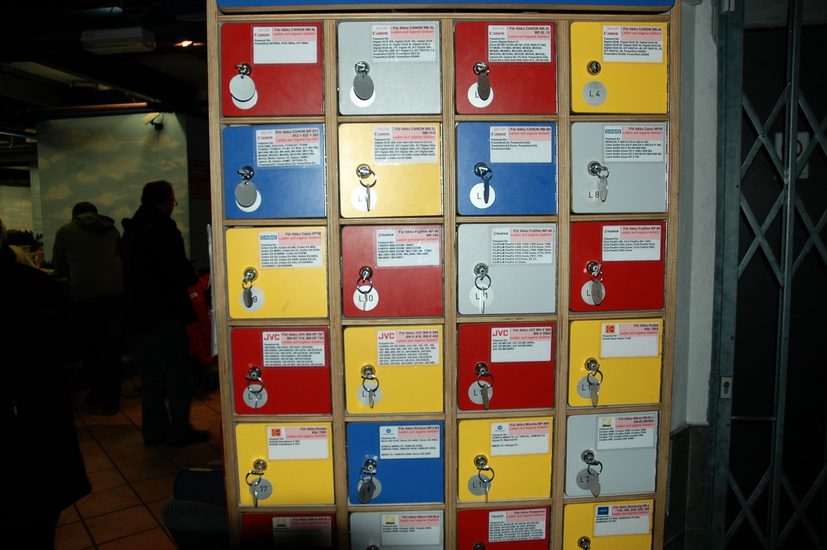 Кстати, также нужно отметить, что создатели этого замечательного заведения - в отличие от многих других владельцев музеев и выставок - не только не препятствуют фото и видеосъемке, но еще и всячески ее поощряют. Более того, на каждом этаже есть специальный стенд, на котором располжены шкафчики со всеми видами адаптеров подзарядки - для большинства телефонов и фотоаппаратов! Вот он, один из таких шкафчиков.
