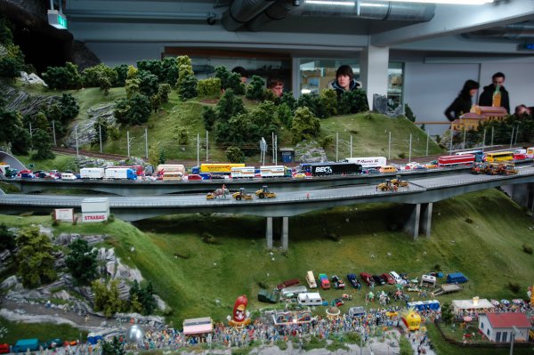 Игрушечная железная дорога - это в Гамбурге. История создания такова. Два брата-близнеца Фредерик и Геррит Браун начали этот проект в 2000 году. На 1150 квадратных метрах они смоделировали железнодорожные маршруты, проходящие по Германии, Америке, Скандинавии и швейцарским Альпам. На игрушечных рельсах размещены 700 составов, 10 тысяч вагонов, 900 семафоров, 2800 зданий и 160 тысяч индивидуальных фигурок людей. Для создания ландшафтов понадобилось 500 тысяч часов работы, 700 килограммов искусственной травы и 4 тысячи килограммов стали. Игрушка обошлась создателям в 10 миллионов евро, однако они не собираются останавливаться на достигнутом и к 2014 году планируют вдвое удлинить макет, добавив модели ландшафтов Франции, Италии и Великобритании. Его площадь тогда будет составлять 1800 квадратных метров. На данный момент проект обслуживает 160 человек.