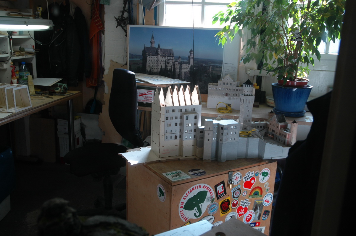 В некоторых залах за стеклом видны мастерские, в которых продложается работа над макетом, а также производятся изменения в уже готовом макете.