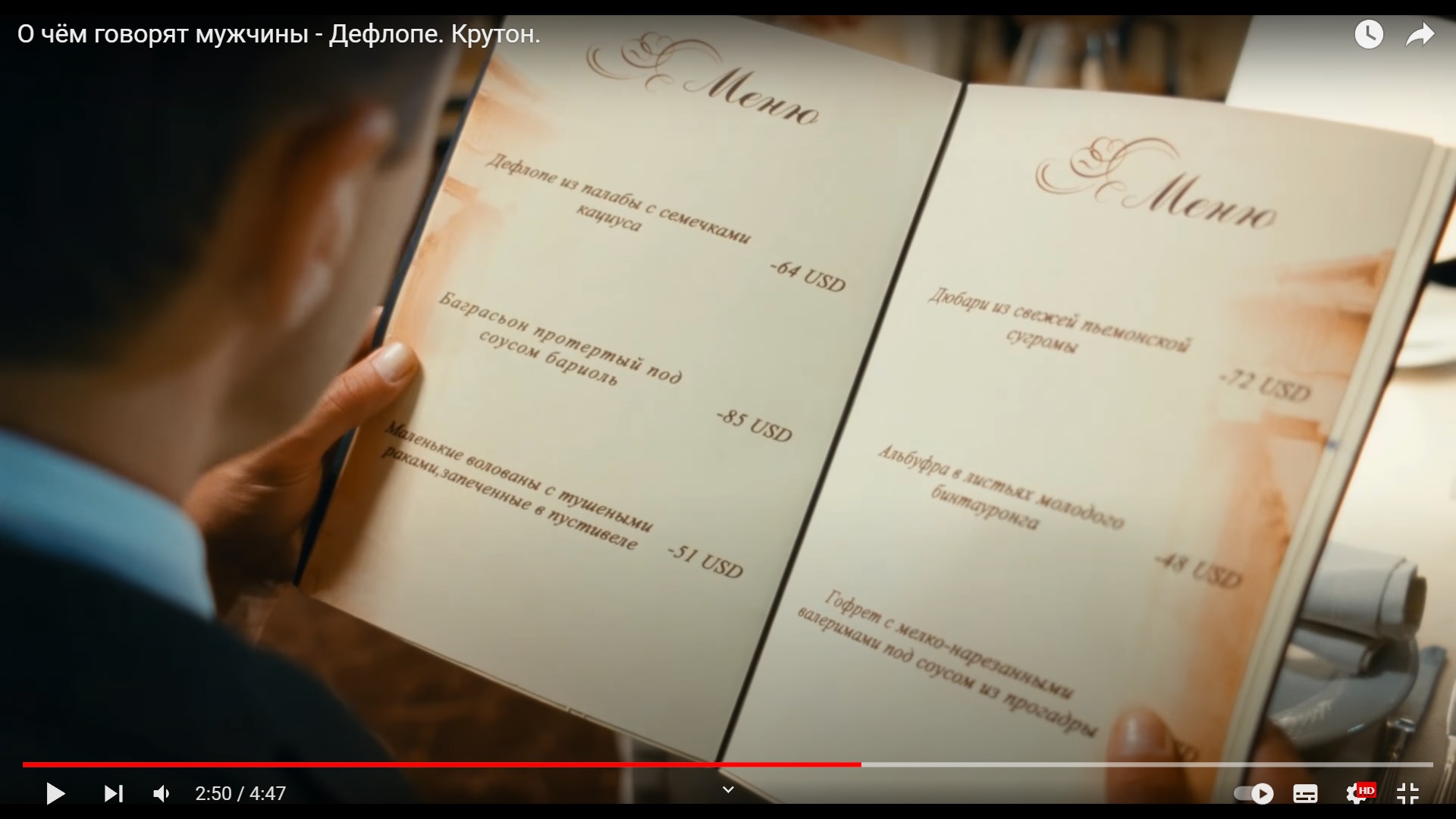 У кого этот фильм есть в HD-записи, рекомендую сделать стоп на кадре, где Камиль разглядывает раскрытое меню. Найдёте ещё лулзов.
