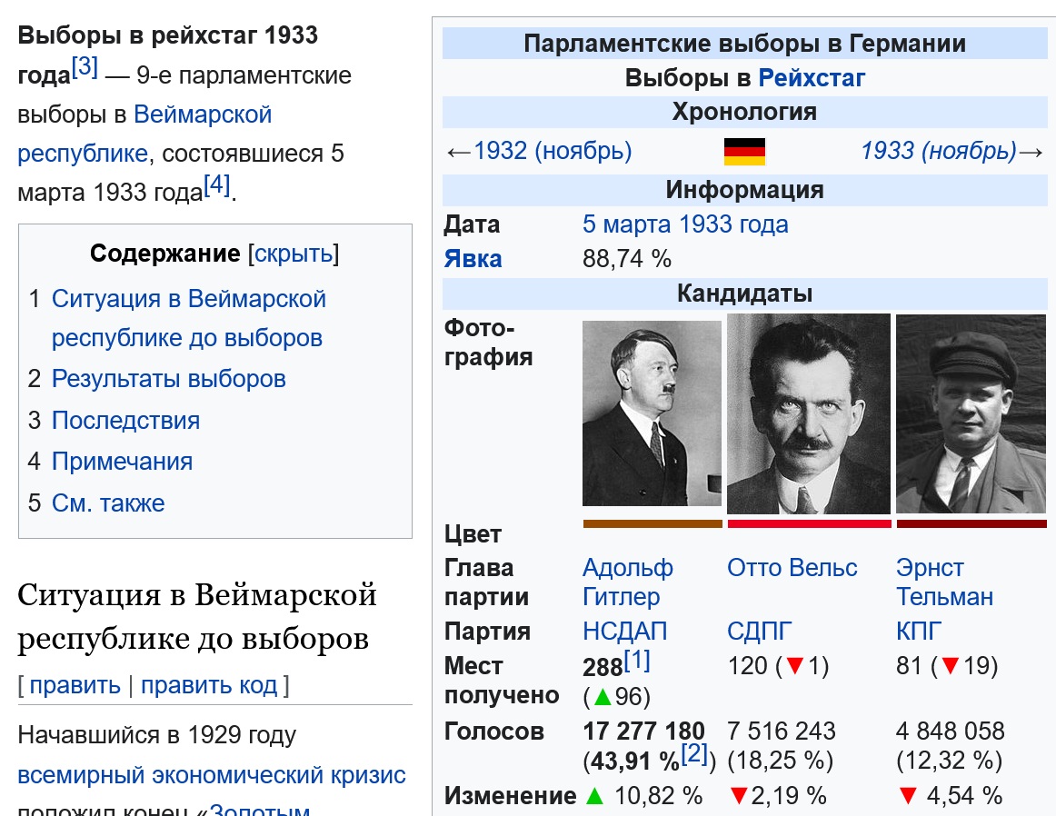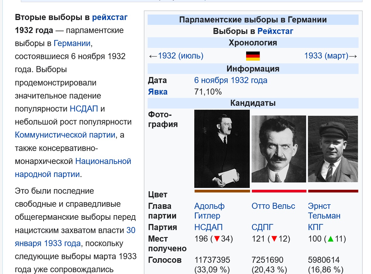 А вот когда немцы свои парламентские институты выбирали вполне себе самостоятельно и свободно - в тридцатые,