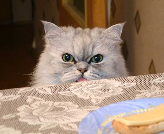 Главное в кошачьей тактике - успеть добежать и вытребовать еду быстрее людей, которые заложат несчастную котинку.