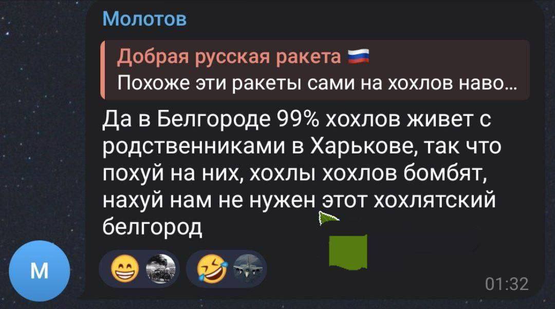 Ну а то что рашка вместо Харькова кабы кидает на Белгород, так готовы апплодировать.