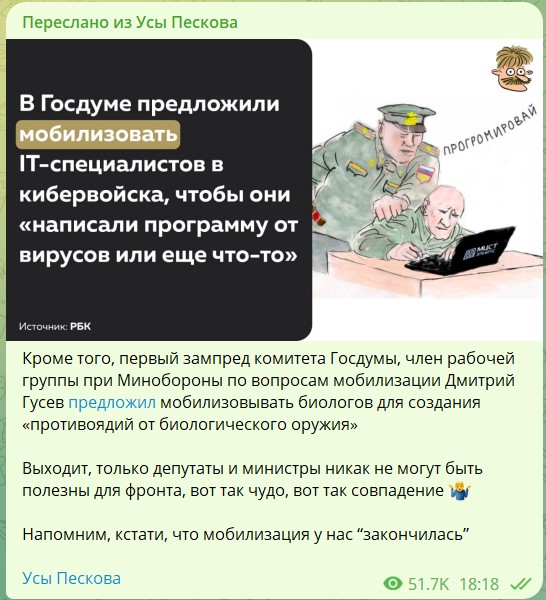 > Так что же получается - сейчас на фронт поедет летучий отряд во главе с Труновым, чтобы собирать у мобиков сперму для криобанка, что ли?