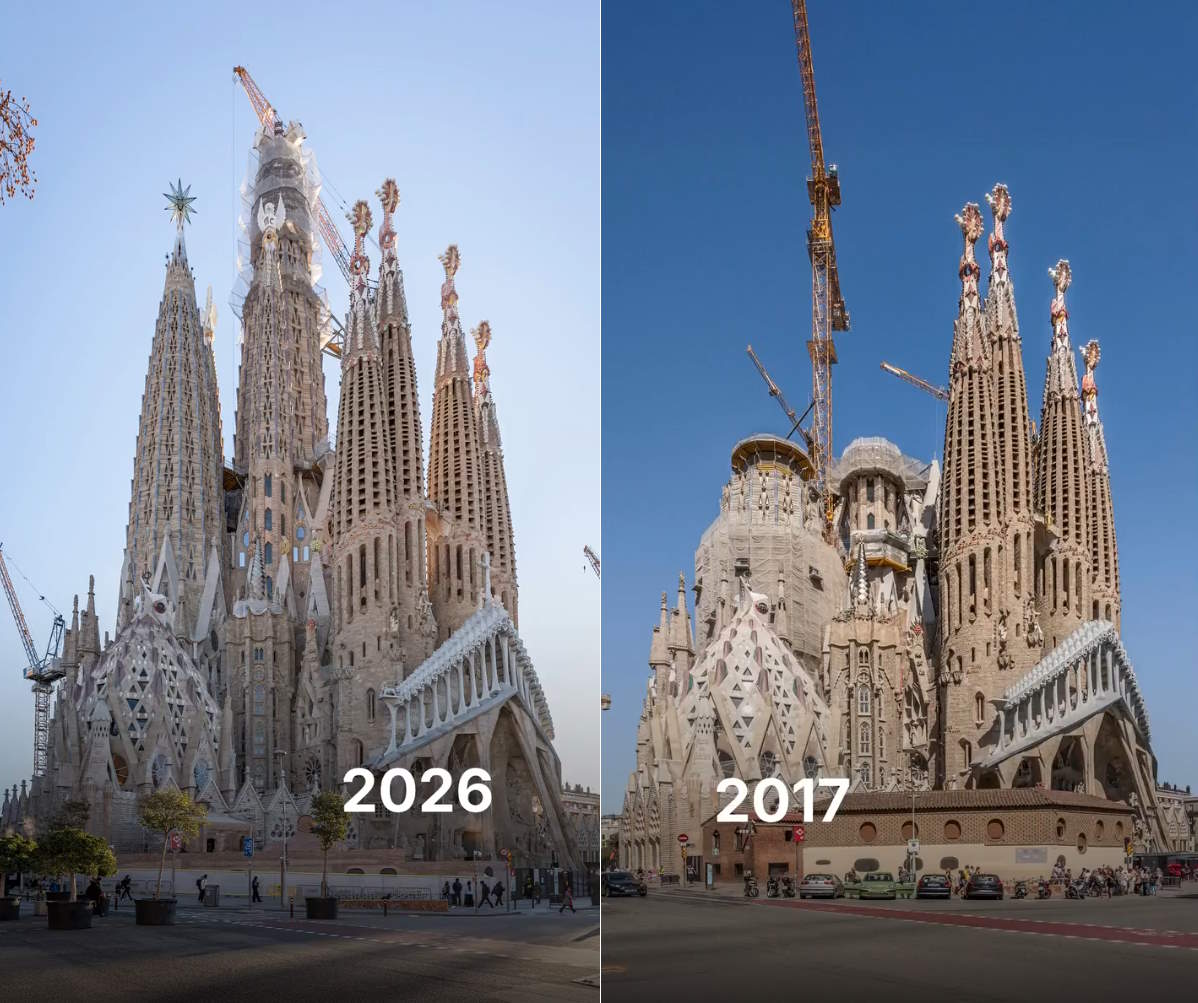 Там завершился один из ключевых этапов строительства - на вершину башни Иисуса Христа — самой высокой части базилики — установили финальный элемент креста.