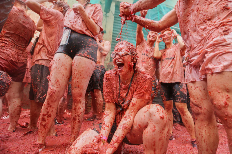 В городке Буньоль (Валенсия) прошла очередная La Tomatina - это когда все кидаются друг в друга помидорами. Об истории этого праздника я писал вот здесь.