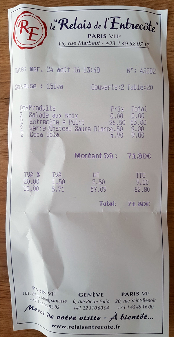 P.S. В Париже Антрекотов всего 3. Четвертый в Женеве. Это и по чеку видно.