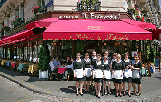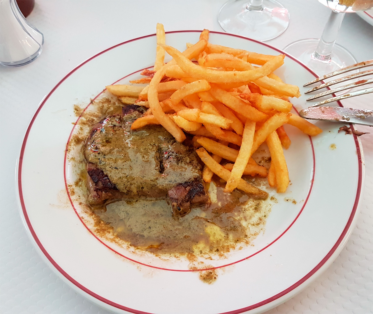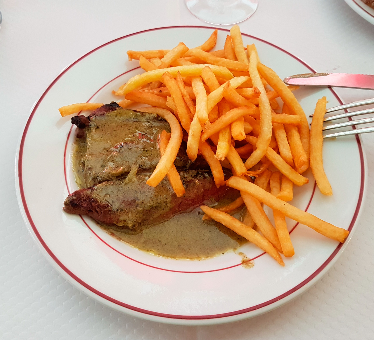 Друзья рекомендовали посетить в Париже ресторанчик Le Relais de l’Entrecôte. Очень известные заведения (в Париже их 4 штуки, расположенные недалеко друг от друга), в которых подают только антрекот. Поэтому в меню там только десерты и вина.