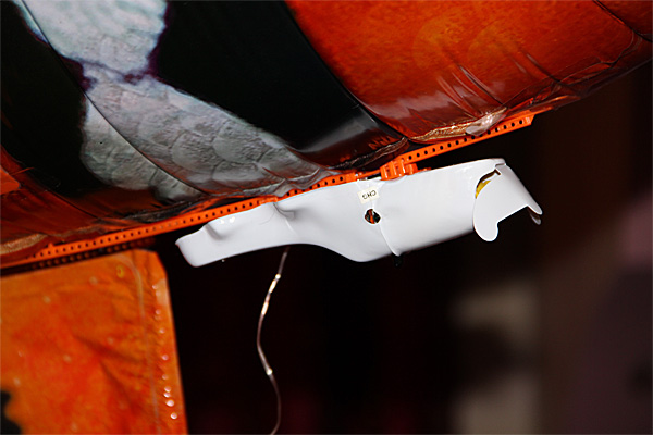 Вот эта белая коробочка крепится под брюшком - от нее идет штекер к хвосту.