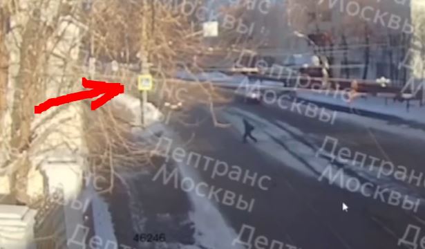 скорее переход от солнца к тени плюс легкий поворот перед этим. Для водителя пешеход стоял на месте и был невидим.