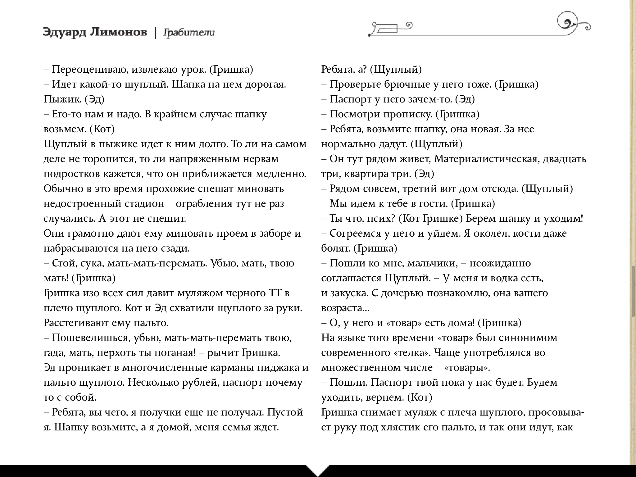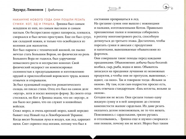 Купил я на пробу для "Киоска" в планшете один номер "Сноба". Почитал, понял, что выписывать, конечно, не буду, не мое это. Но вот что меня поразило. Это номер #13-1. Литературный, так сказать, номер, посвященный Диккенсу. И там опубликован рассказ Лимонова "Грабители".