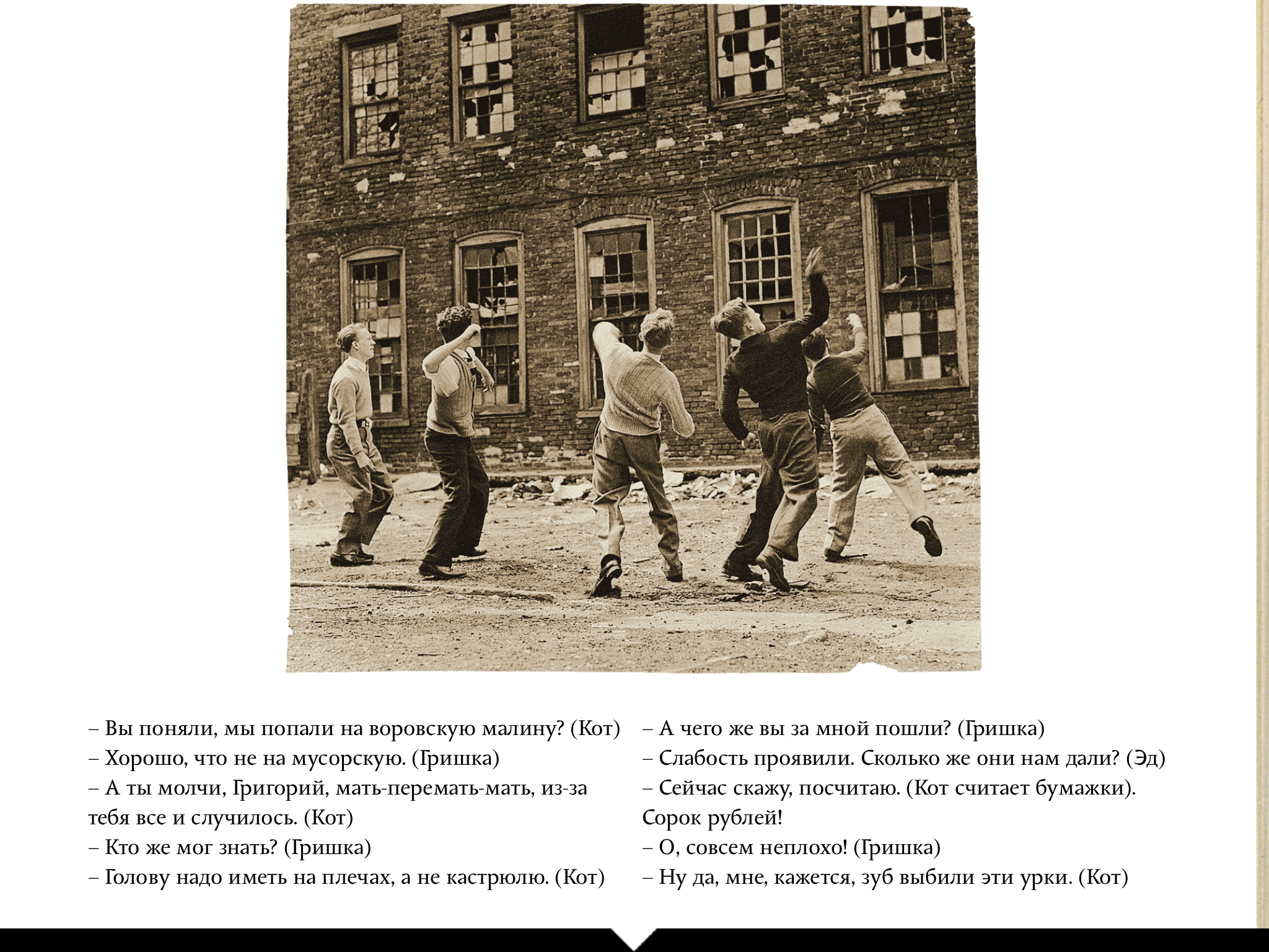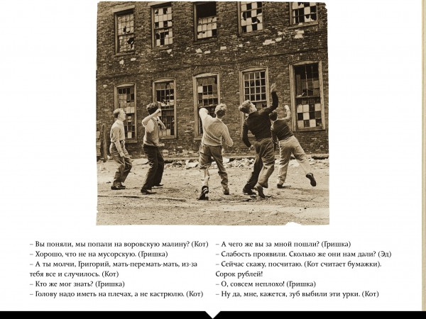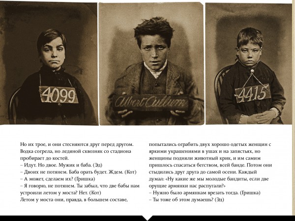 Почему в иллюстрациях к рассказу использованы фото из английских полицейских архивов, если действие происходит в "левобережной Украине"? Это вопрос два. (И фото подростков, бьющих окна, тоже английское, ладно хоть, на самом деле послевоенное.)