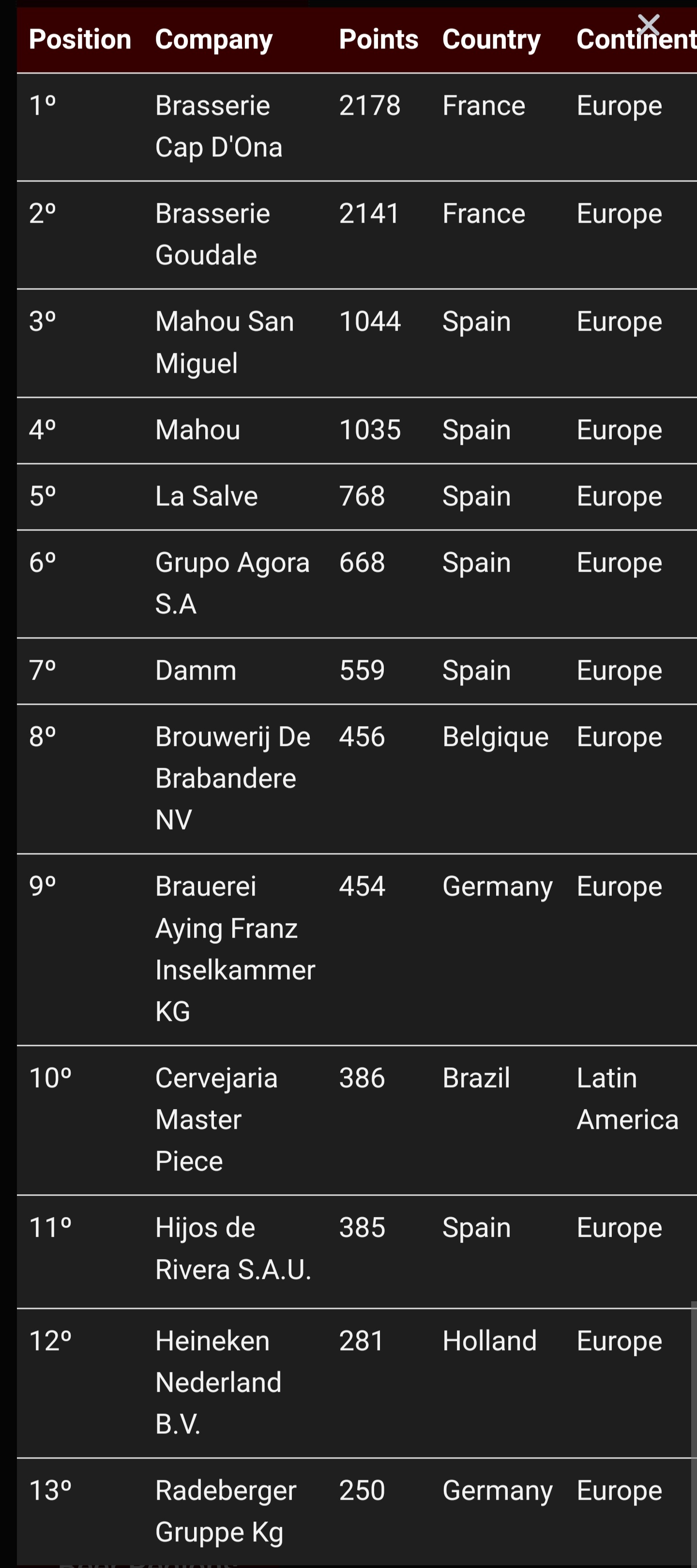 Кроме того, жюри присудило серебряную медаль сортам Ambar Especial Sin Gluten, Ambar 1900 Sin Filtrar, Ambar Morena, Ambar IPA, Ambar Triple "0" Sin Gluten, Ambar Montañesa, Ambar Triple "0" Tostada и Ambar Triple "0". Таким образом, Ambar завоевал пьедестал почета для одиннадцати своих сортов пива, набрав в общей сложности 999 баллов.
