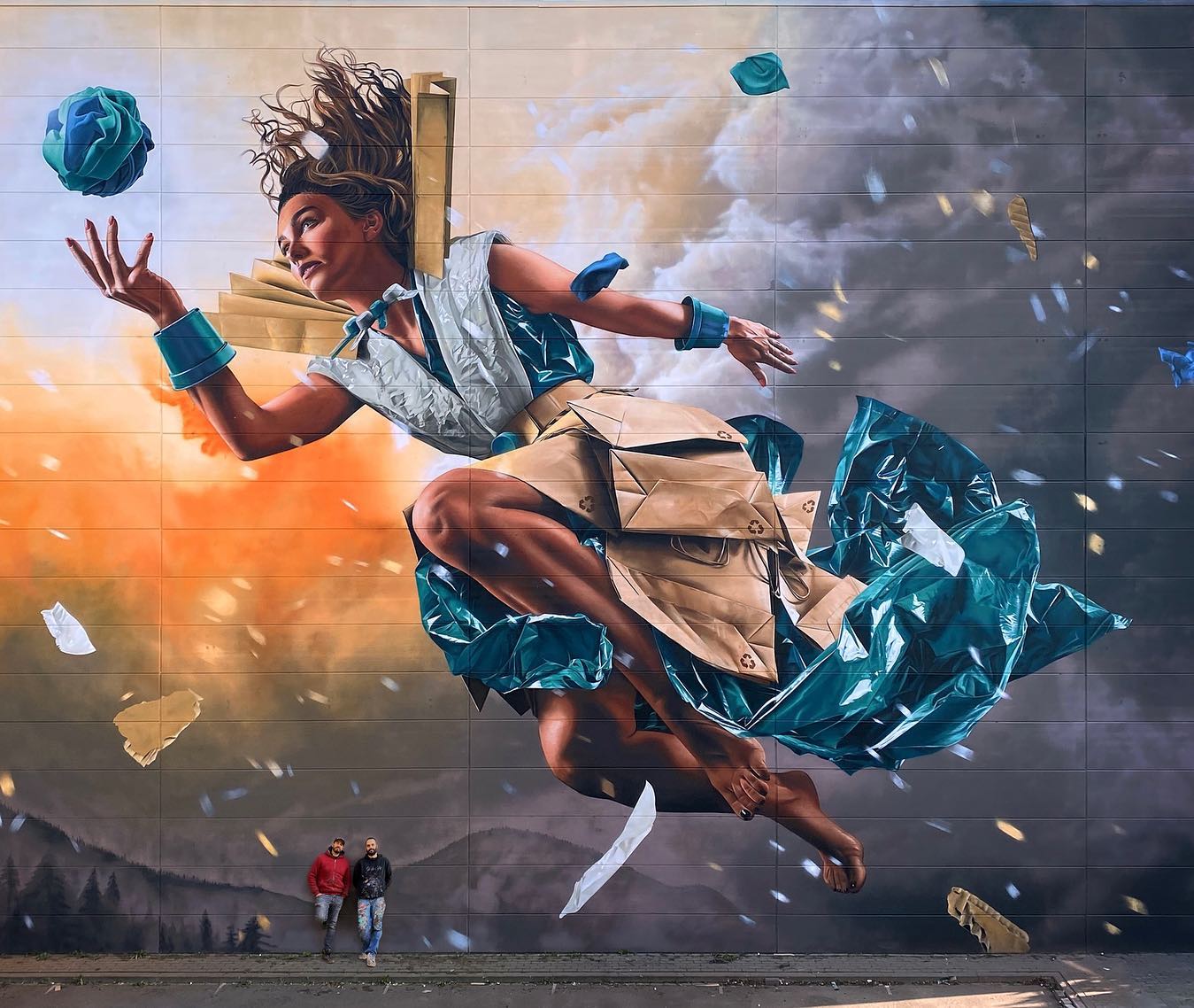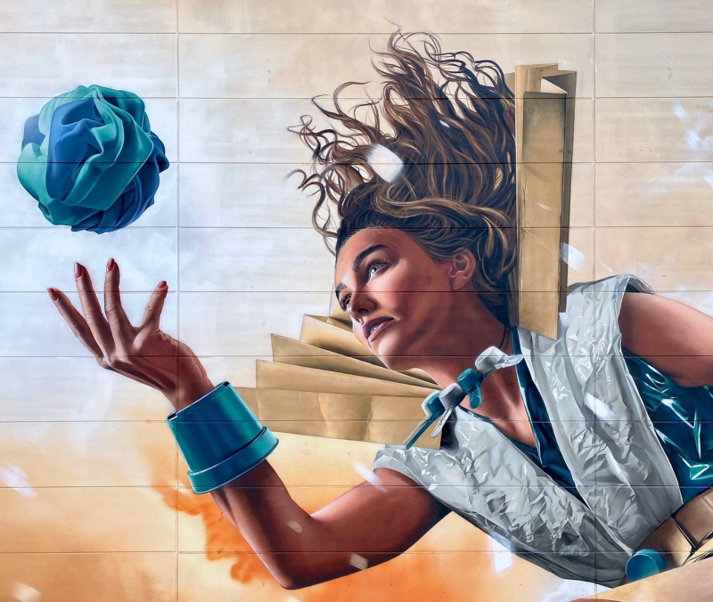 На первый взгляд, женщина, изображенная в мурале, одета в обычную одежду. Но эта одежда состоит из мусора. Она движется к светящемуся глобусу, состоящему из отходов, как отсылка к переработке мусора как ответу в условиях меняющейся окружающей среды и климата.