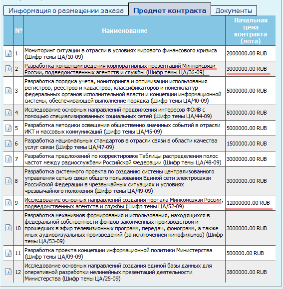 Никто не хочет разработать концепцию проведения презентаций за три лимона? Документик серьезный - наверное, аж на страничку или даже две. Или исследовать осовные направления создания портала Минкомсвязи за 12 лимонов? На сам портал, я думаю, выделят лимончиков двадцать бакинских - дело-то серьезное, если только исследование основных направлений - под $400 тысяч.