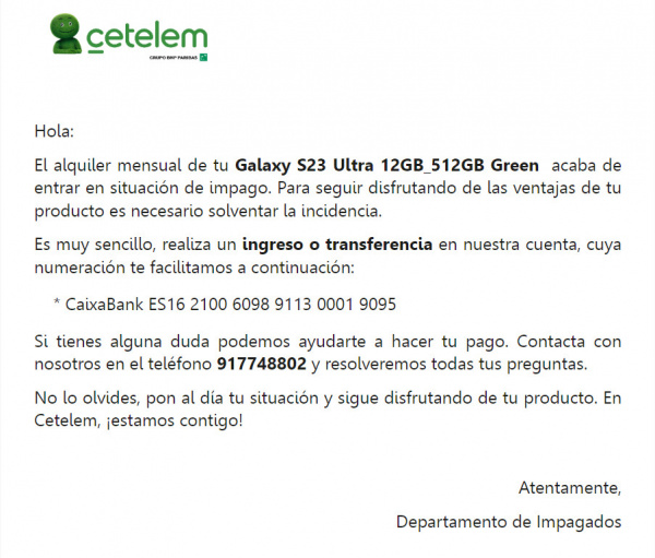 Что письмо представляет собой очень неумелый развод - оно понятно. Особенно прикольно смотрится предложение от банка Cetelem перевести деньги на счет в совершенно другом банке.