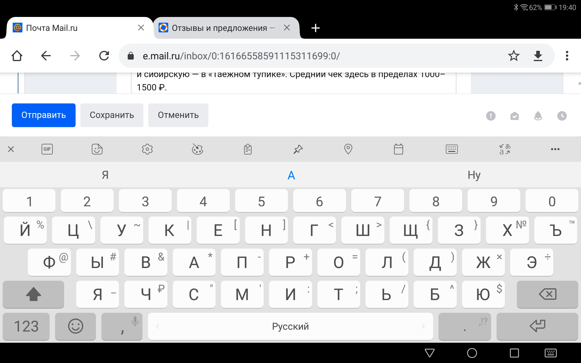 я не очень понимаю, зачем вам на планшете заходить в почту через браузер, когда есть приложение. И еще более не понимаю, какие претензии к почте, если у вас весь экран клавиатура занимает.