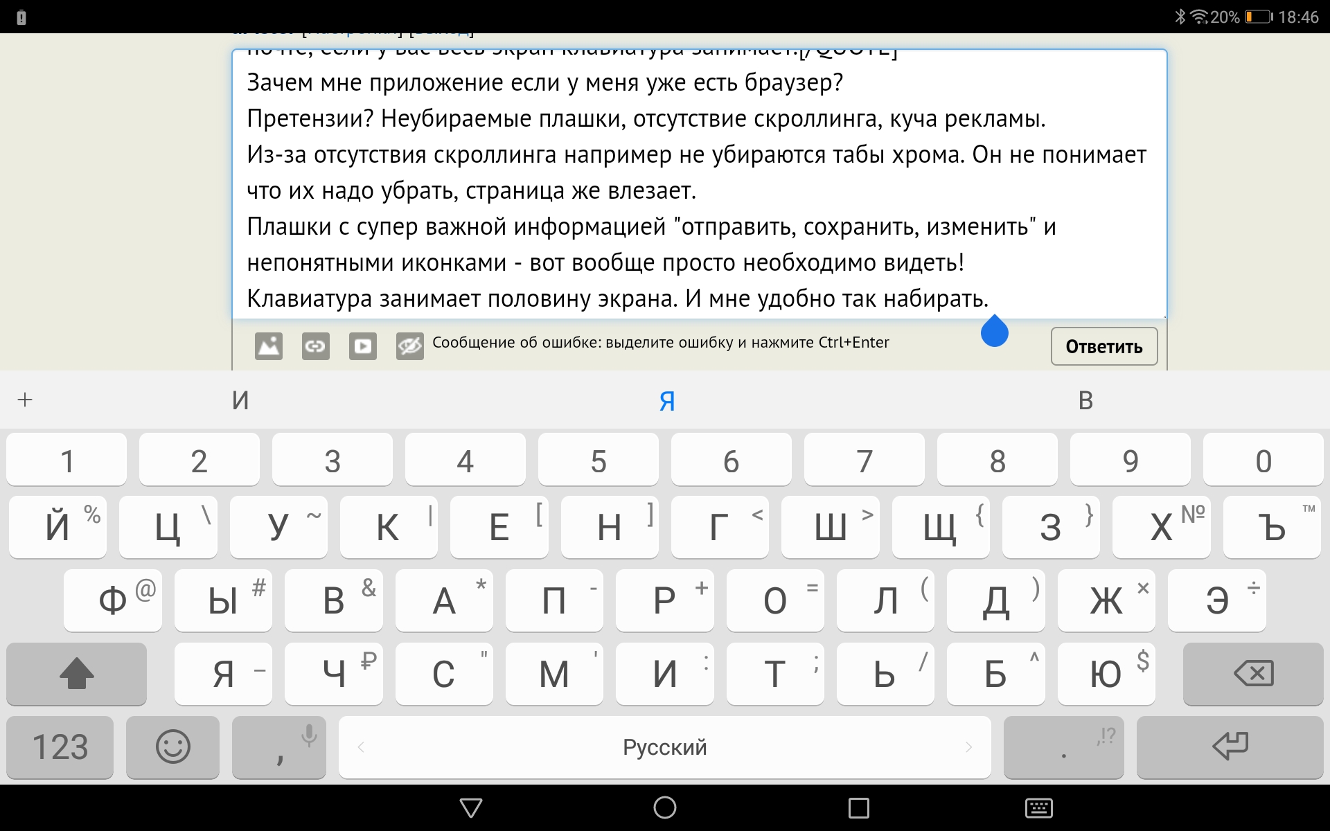Но когда пытаешься ответить - остаётся вообще 1-2 видимых строчки!