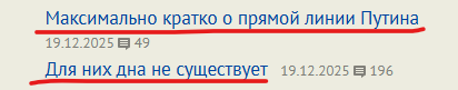 💩 Экономика. В экономике все хорошо — ее замедление находится под контролем властей. По словам президента РФ, повышение НДС до 22% — временная мера. Прямо во время прямой линии Центробанк объявил о понижении ключевой ставки, а Путин подчеркнул, что не вмешивается в работу ЦБ.