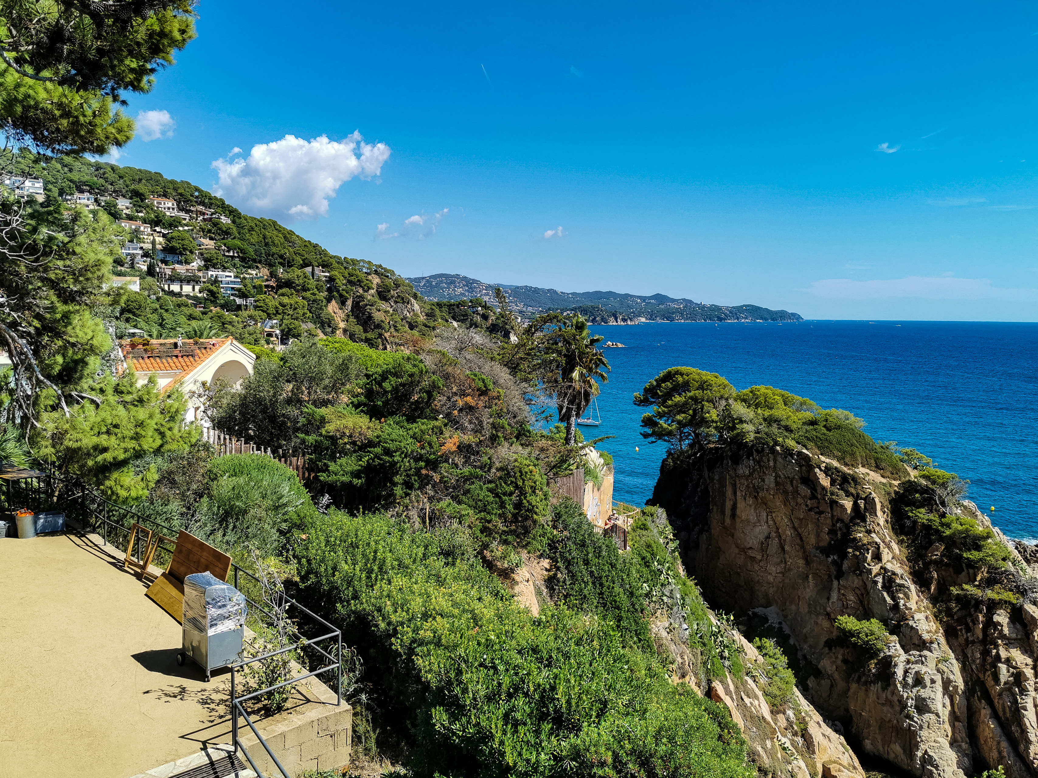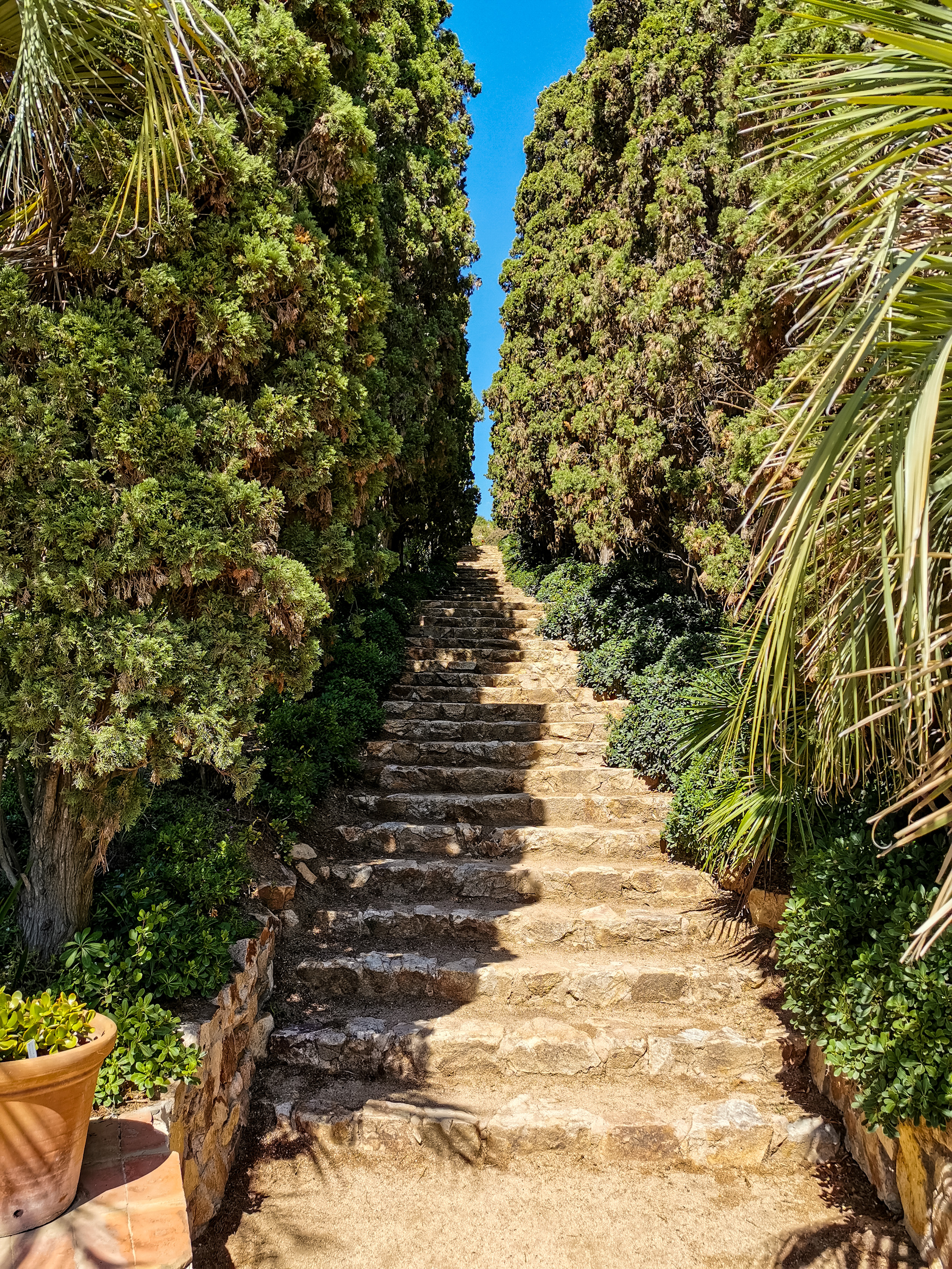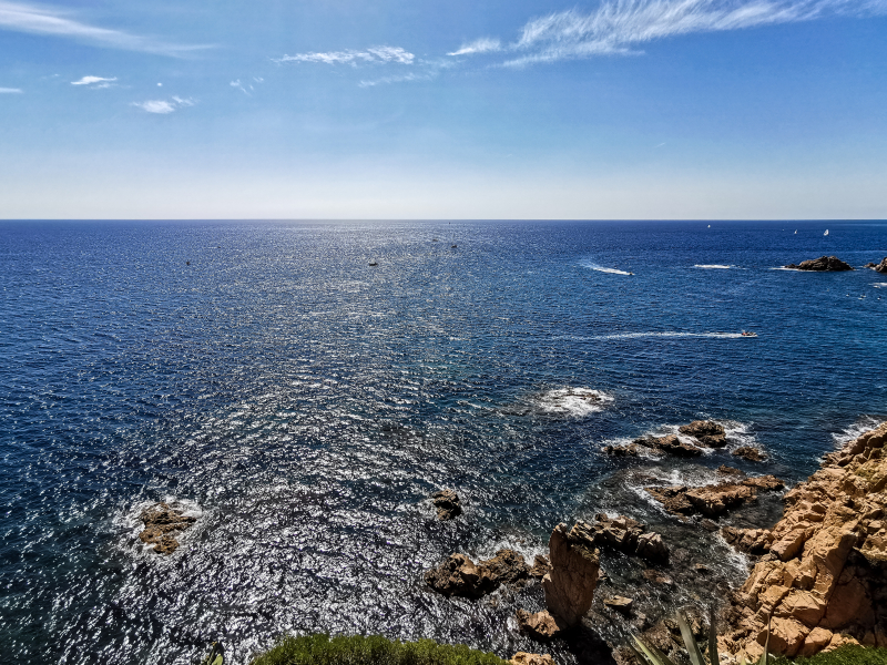 С этой стороны - вид на залив Cala de Sant Francesc, я там был. Как раз стоял вон на той площадке с перилами, где на фото видны люди, и смотрел на ботанический сад.